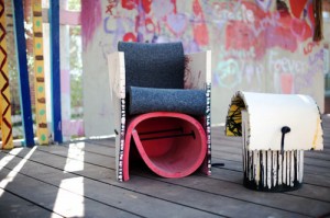 Vanja Bazdulj will be presenting a series of chairs in Milan during Salone at Designersblock Ventura Lambrate . From the designer: Rough & Ready is an experimental furniture morphology inspired by exploring the potentials of the imperfect, human, unpredictable, the unfinished “finish” look aesthetics and independence in work process (“I don’t need no Fancy tools”). Object designs are focused on exploring ambiguous forms, materials out of context and a playful approach to making. All material is prepared by hand, making each piece a unique version. Industrial wool pressed felt is reinforced by rubber, creating not only functional elements but playing with aesthetics of the pieces. Tailored cured sheets of different densities wool felt are assembled and tightened into place with rope, forming seating elements. All Rough&Ready models can be altered according to client wishes and needs, be it in scale or colors. Feeling playful